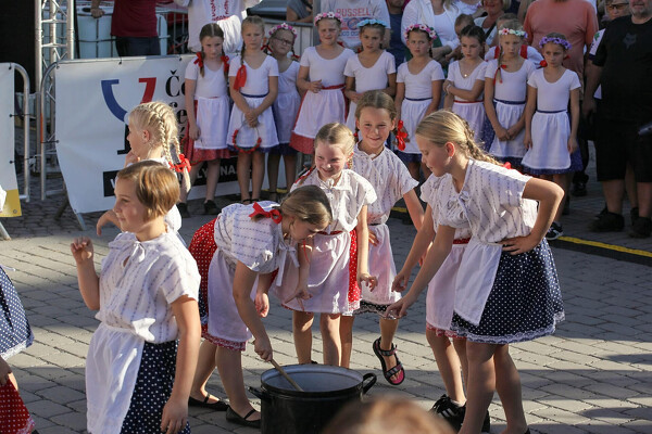 Liduška předvedla pásmo 3 moravských tanců a stylově tak doplnila folklorní kulturní program. Děti tančily na studiovou zvukovou nahrávku, kterou natočila stejnojmenná dorostenecká cimbálová muzika ZUŠ Rakovník v našem novém nahrávacím studiu – gratulujeme.